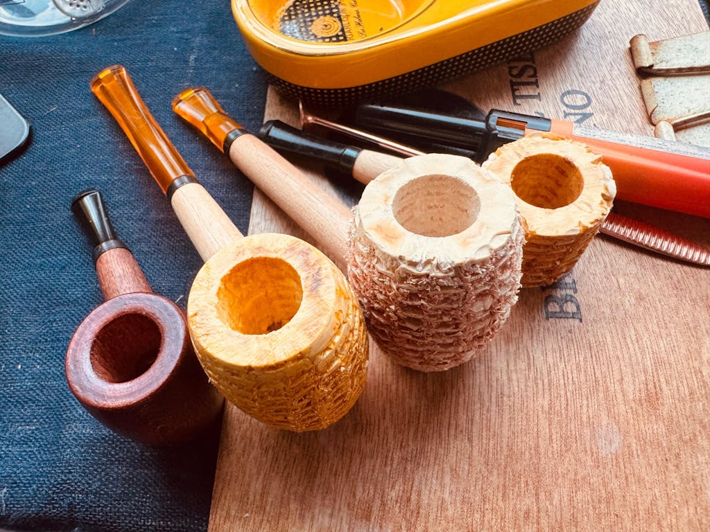 The Eaton has a smaller, barrel-shaped bowl that is all natural. It has a long, slim, non-filtered stem with a short amber bit.