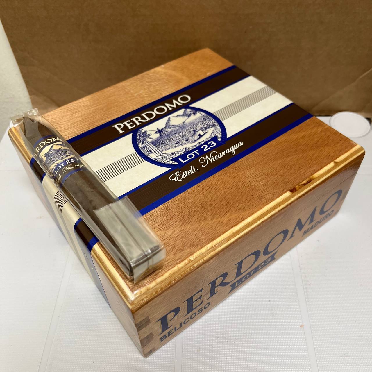 Perdomo Lot 23 Maduro is a dark and flavorful expression of the famed Lot 23 farm in Nicaragua. Wrapped in a lush Maduro leaf and filled with five-year-aged tobaccos, this medium-to-full-bodied cigar delivers notes of dark chocolate, espresso, and a hint of spice. Its smooth draw and earthy complexity make it a favorite among Maduro enthusiasts who appreciate depth without harshness. A field-to-finish masterpiece from the Perdomo family.