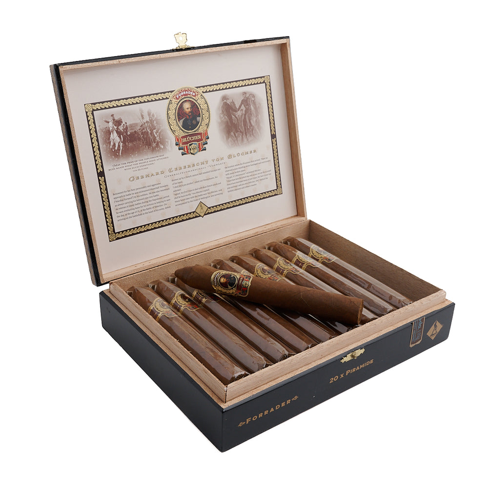 Wrapped in a luxurious Ecuadorian leaf and bound with Dominican tobacco, the Forrader features a rare filler blend of Dominican, U.S., and Zimbabwean tobaccos—an audacious choice that adds depth and complexity. The result is a medium-to-full bodied profile with rich notes of dark chocolate, espresso, oak, and subtle spice. Each draw is smooth, flavorful, and layered, offering a smoking experience that’s as aggressive and refined as the general it honors.
