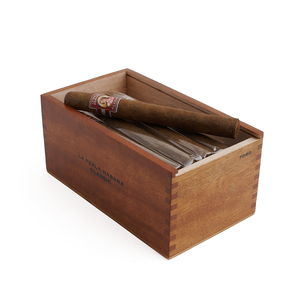 La Perla Habana Classic Cameroon cigars are a refined blend of Dominican, Honduran, and Nicaraguan fillers, wrapped in a toothy Cameroon wrapper that adds an enticing oily sheen. This cigar delivers a rich and complex smoking experience, featuring notes of nuts, toast, butter, and cedar, complemented by a natural sweetness that lingers on the palate. Whether you're a seasoned aficionado or a casual smoker, this cigar offers a smooth yet flavorful draw, perfect for any time of day.