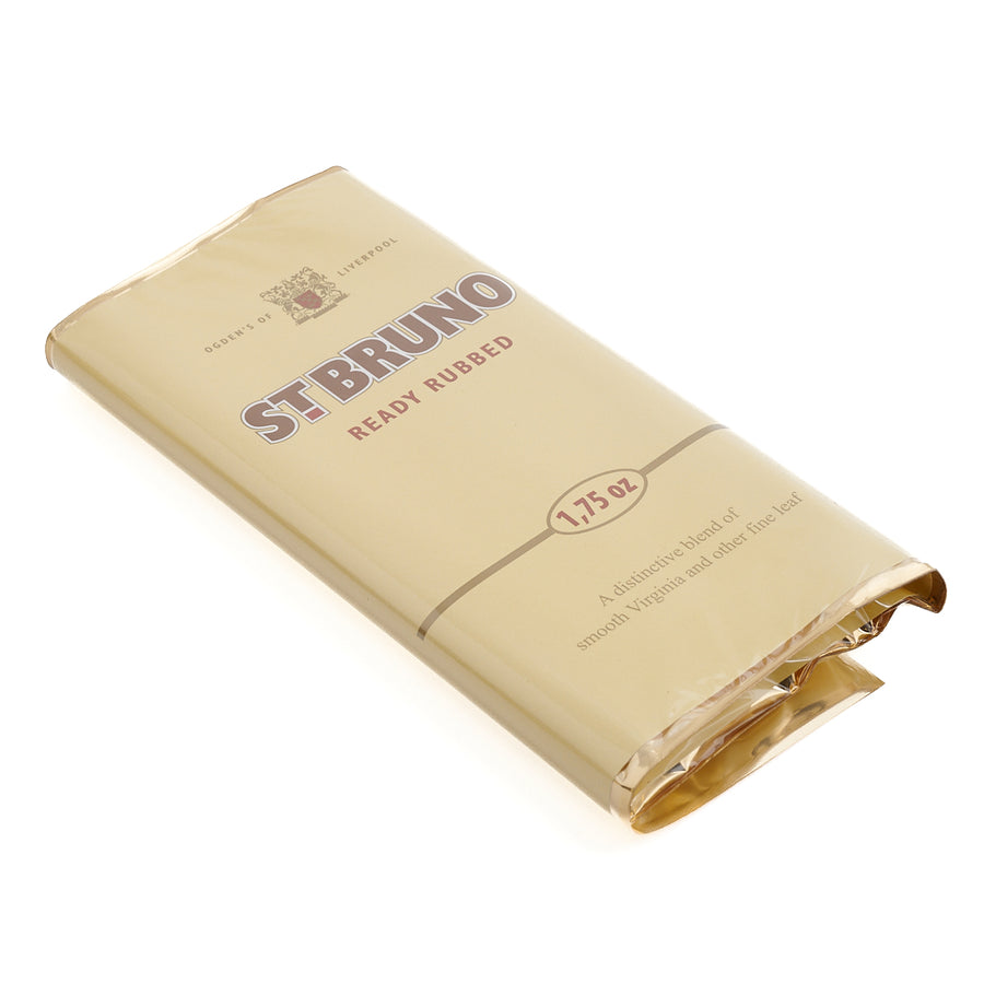 St. Bruno Ready Rubbed is the ready-rubbed version of the popular St. Bruno Flake. It is a distinctive blend of smooth Virginia and smoky dark fired Kentucky — topped with subtle floral and fruity notes for a unique Aromatic experience.