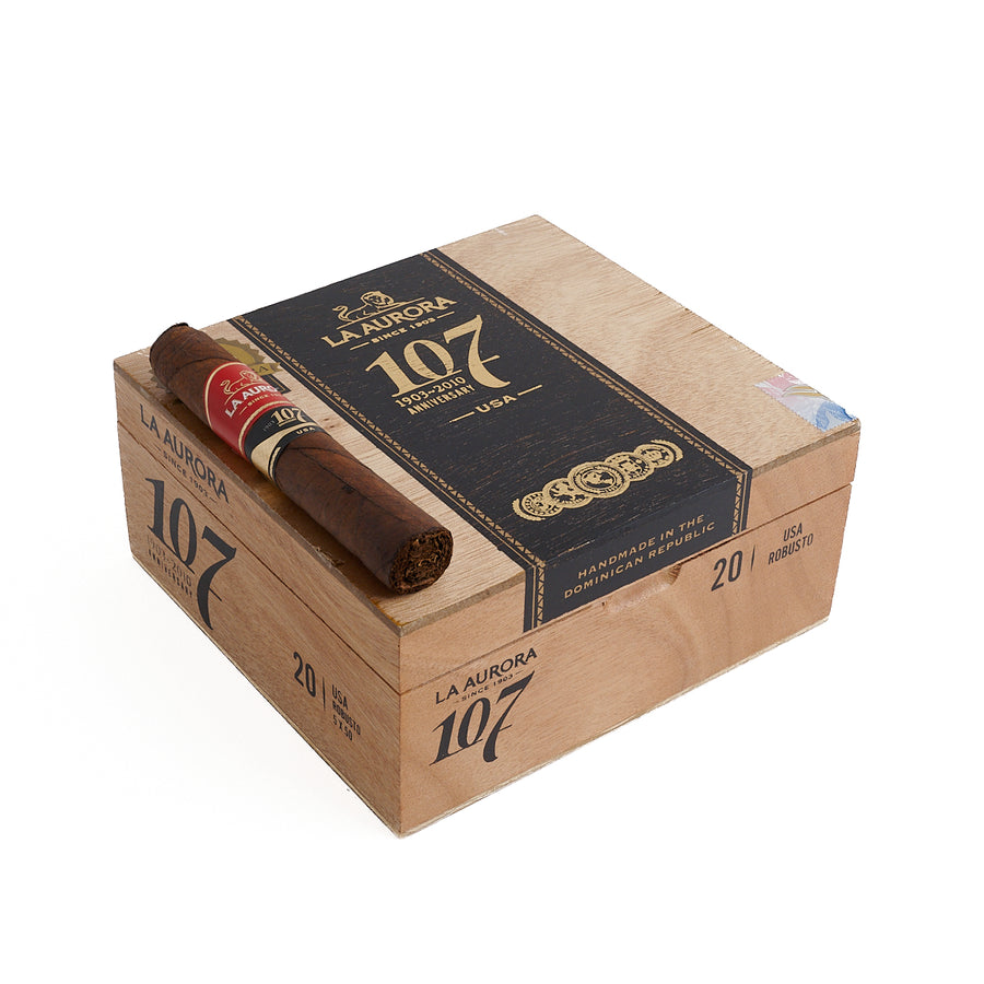 Crafted to commemorate La Aurora’s 107th anniversary, La Aurora 107 Maduro is a bold evolution of the original 107 blend—offering deeper richness and a darker, more decadent profile. Handmade in the Dominican Republic, this medium to full-bodied cigar features a dark, silky Connecticut Broadleaf Maduro wrapper, a Dominican binder from the Cibao Valley, and a filler blend of Dominican, Nicaraguan, and Peruvian tobaccos.
