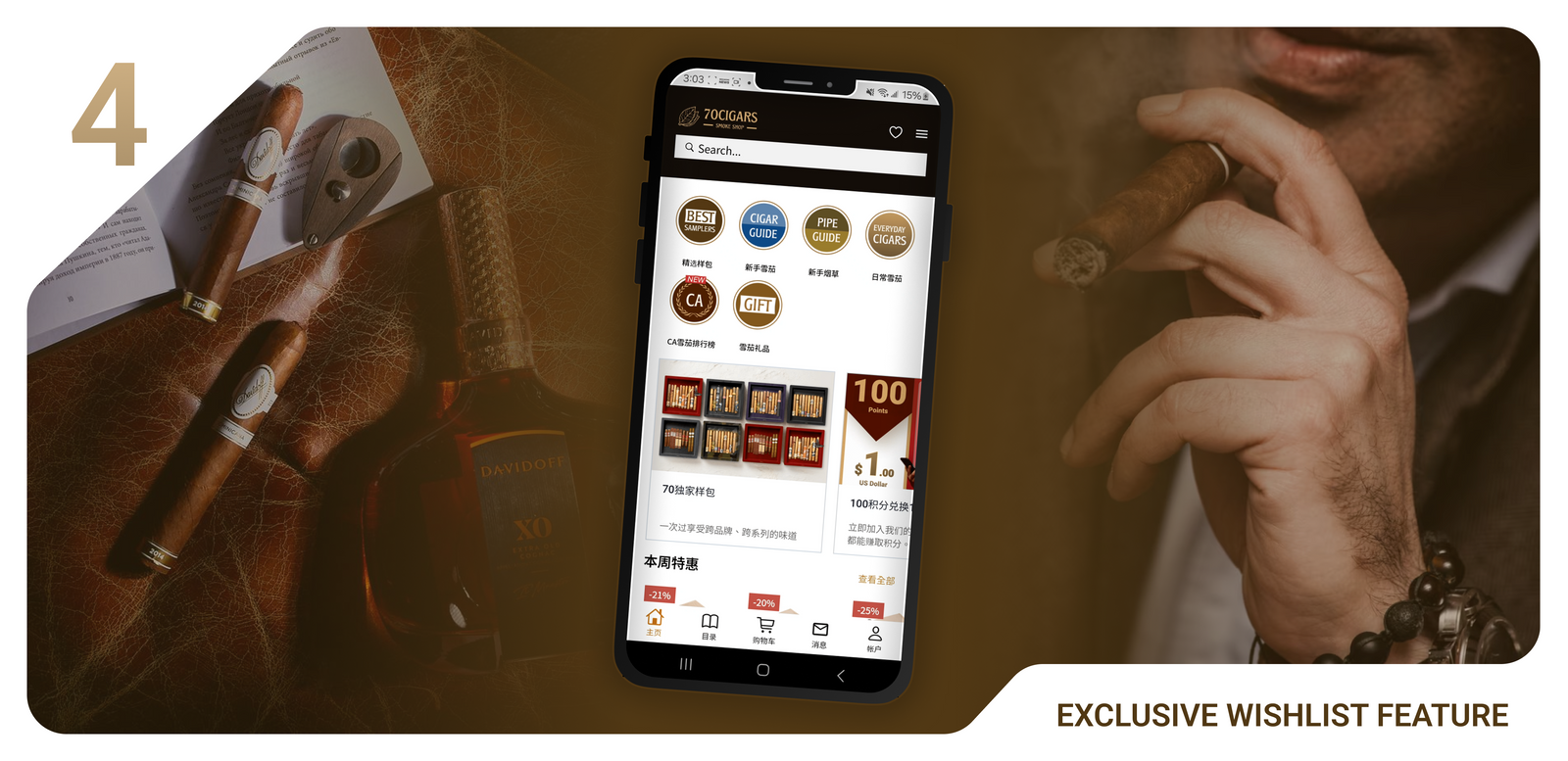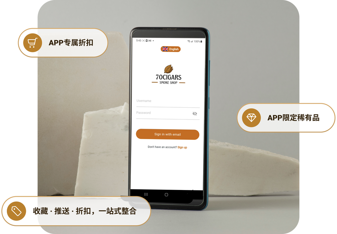 70Cigars App,不只是升级工具,更是我们为你量身打造的专属通道。为了让你购物更安心、信息更及时、体验更顺畅,我们集成了专属折扣活动、稀有/热门商品 App 发售等专属功能,只对 App 用户开放,网页无法享有。
