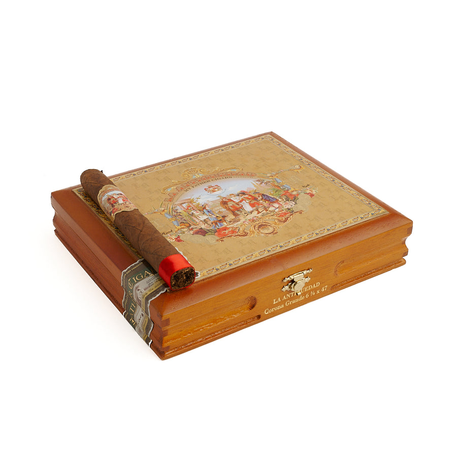My Father La Antiguedad cigars are a tribute to Cuban heritage, crafted with aged Nicaraguan tobaccos from the San Rafael, Las Quebradas, and San Jose farms. Wrapped in a Habano Ecuador Rosado Oscuro leaf, this box-pressed cigar features a double Nicaraguan binder (Criollo & Corojo) and delivers a medium-to-full-bodied experience with complex yet balanced flavors. Expect rich notes of cocoa, coffee, leather, and a touch of pepper, making it a refined choice for aficionados.