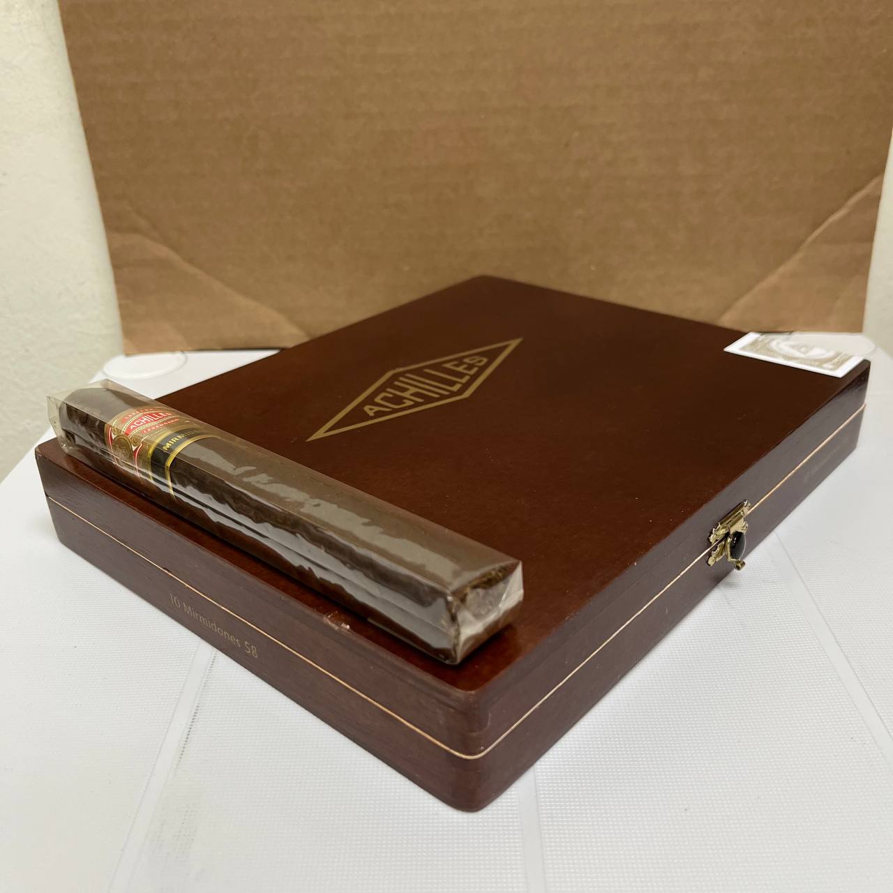 Curivari Achilles Mirmidones is a bold reinterpretation of the original Achilles blend, named after the legendary warriors who fought under Achilles in Homer’s Iliad. This Nicaraguan cigar is wrapped in a dark Mexican San Andrés leaf, replacing the original Habano wrapper to deliver a richer, earthier profile. Beneath the surface lies a robust blend of Nicaraguan binder and filler tobaccos, rolled at the renowned Plasencia factory.