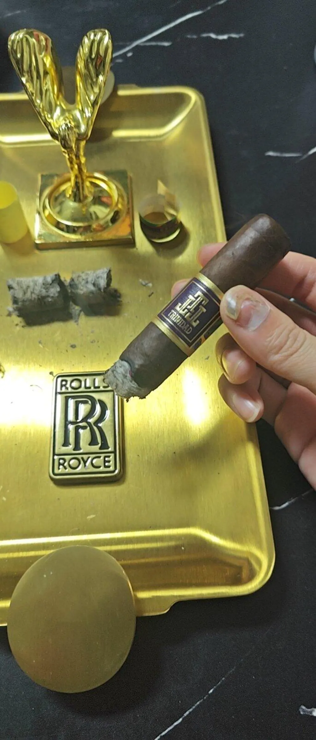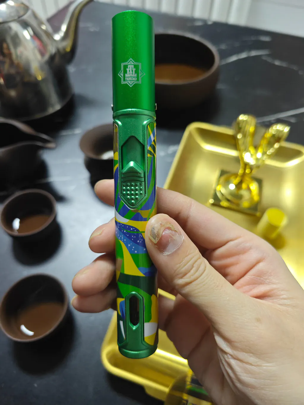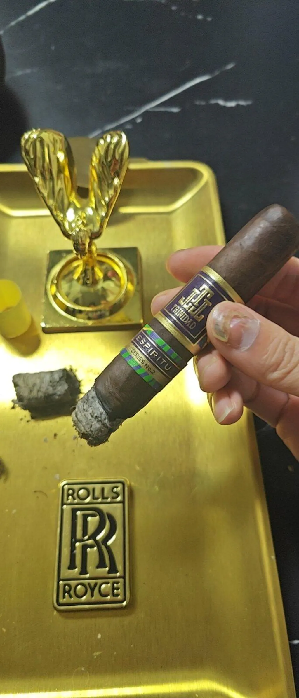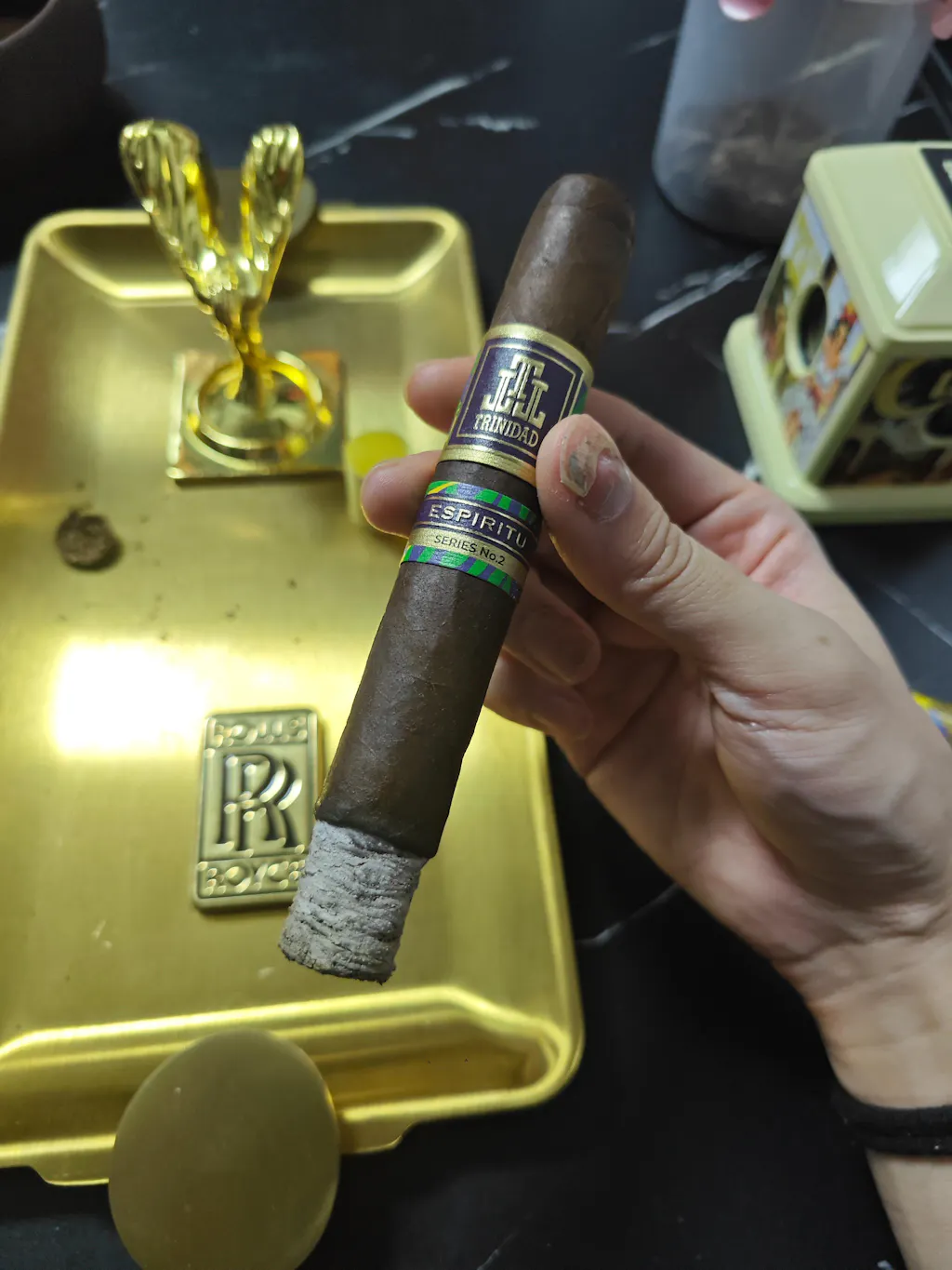 The Trinidad Espiritu #2 Toro & Torch Sampler is a meticulously crafted cigar collection that showcases the art of cigar-making. This sampler includes five hand-rolled, medium-strength Toro-sized cigars, each featuring a Brazilian Arapiraca maduro wrapper, Nicaraguan binder, and a blend of Brazilian and Nicaraguan fillers. Known for its rich, earthy flavors with hints of spice and sweetness, this sampler also comes with a beautifully designed Vertigo torch lighter, making it an ideal gift for any cigar enthusiast.