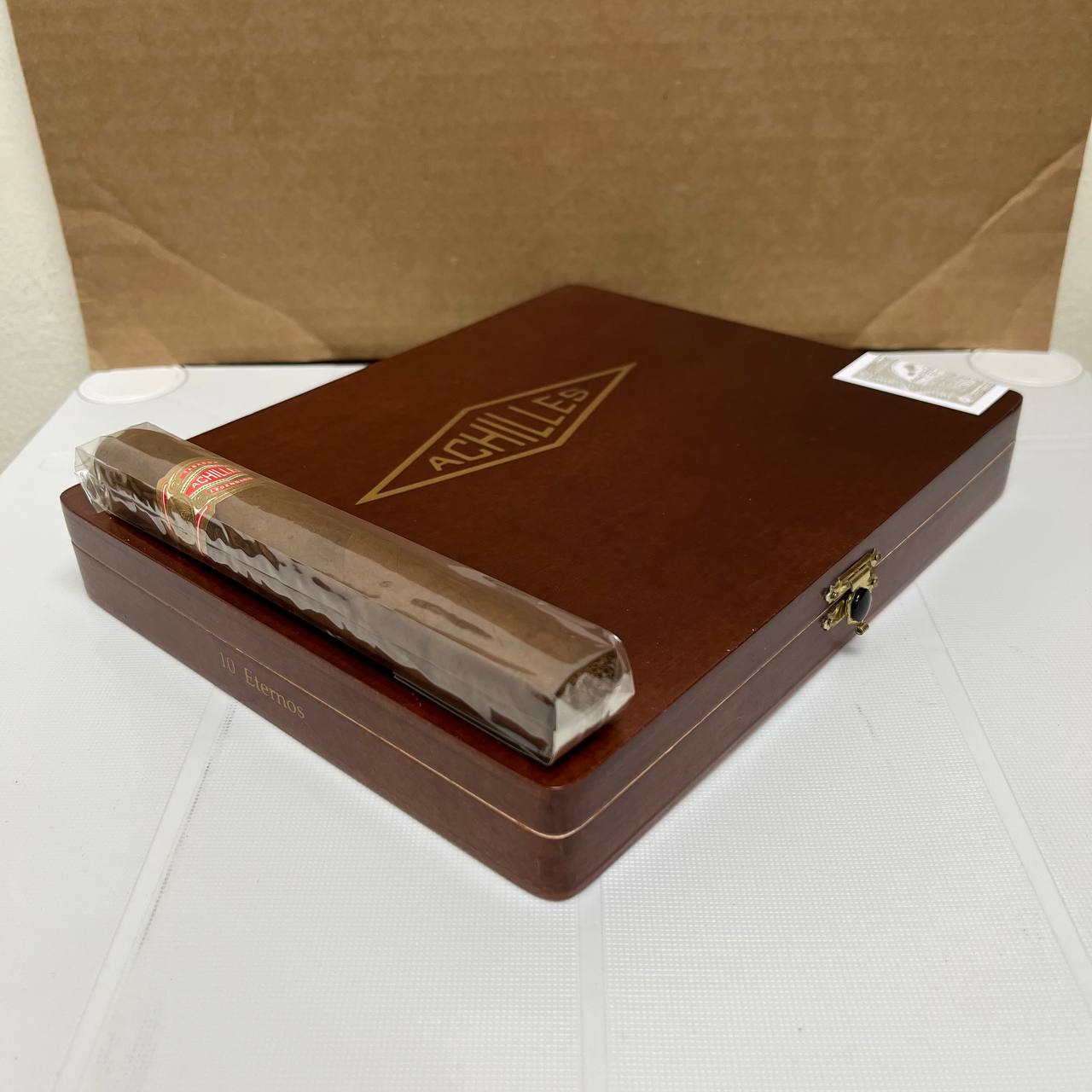 Measuring 6.25 x 52, the Eternos vitola offers a slow, cool burn and a smooth draw, making it ideal for seasoned smokers who appreciate depth and intensity. With its minimalist banding and classic presentation, the Achilles Eternos Toro is a boutique gem that blends old-world aesthetics with modern strength.