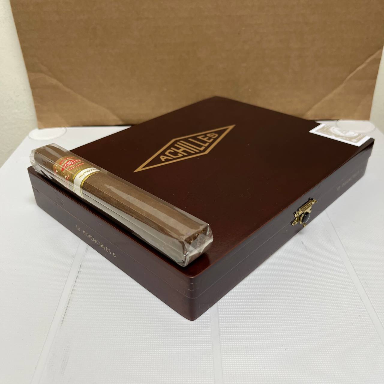 Curivari Achilles Invencibles is a bold Nicaraguan puro crafted for seasoned smokers who crave intensity and complexity. Inspired by the legendary Greek warrior, this cigar features a lighter Habano wrapper over a robust blend of aged Nicaraguan binder and filler tobaccos. The result is a full-bodied smoke that delivers a rich tapestry of flavors—pepper, cedar, caramel, coffee, and dark chocolate—with a smooth yet powerful finish.