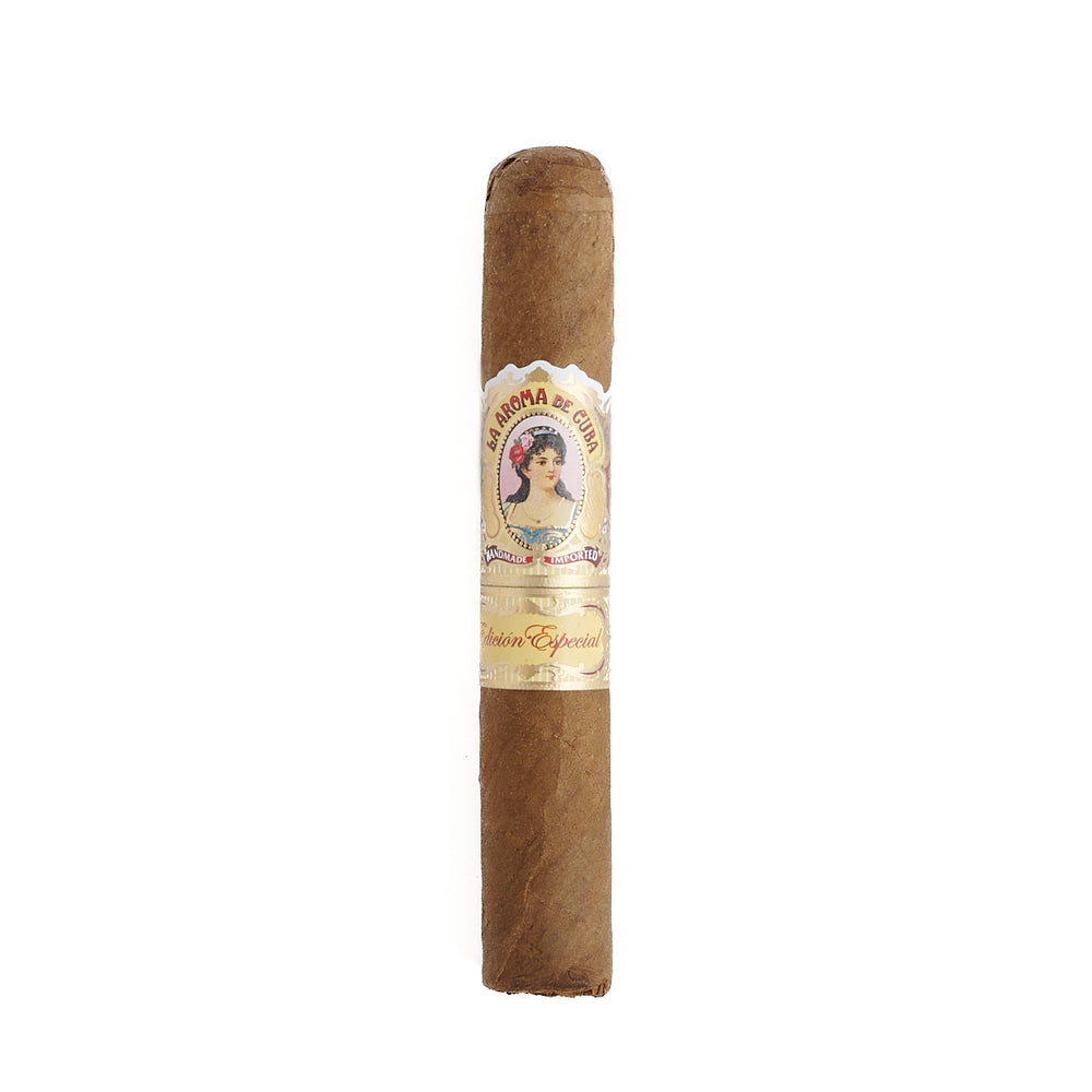 La Aroma de Cuba Edicion Especial cigars are premium handmade cigars crafted by master blender Jose 'Don Pepin' Garcia. They feature a Cuban-seed wrapper from Ecuador and a blend of aged Nicaraguan tobaccos. These cigars offer a medium to full-bodied profile with rich flavors of smoked almond, leather, cocoa, and coffee bean, complemented by a spicy finish. Known for their robust and complex taste, they are a true delight for cigar enthusiasts.