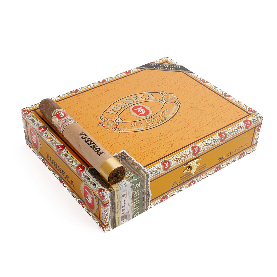 My Father Fonseca is a premium cigar that combines the rich heritage of the Fonseca brand with the craftsmanship of My Father Cigars. This cigar features a Nicaraguan Corojo ’99 wrapper, known for its reddish-brown color and slightly oily texture. The binder and filler tobaccos are also sourced from Nicaragua, ensuring a consistent and flavorful blend. Known for its medium to full-bodied strength, the My Father Fonseca delivers complex flavors of raisin, red pepper, cinnamon, cedar, and orange zest, making it a delightful choice for any cigar enthusiast.