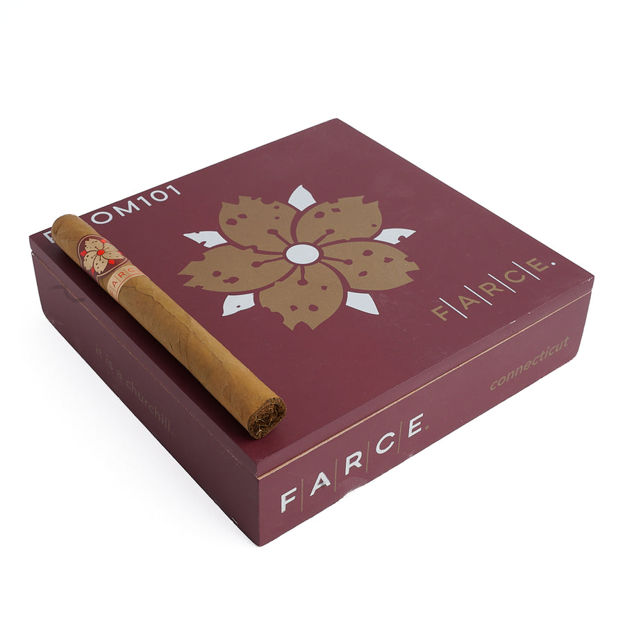 Product Information & SpecificationsRoom 101 Farce Connecticut Churchill is a premium cigar crafted with a golden Ecuadorian Connecticut wrapper, complemented by Dominican and Nicaraguan long-fillers. Produced in the Dominican Republic by Tabacalera William Ventura, this mellow to medium-bodied cigar offers smooth flavors with minimal bite. It delivers a creamy, nutty, and woody profile, with hints of cloves, nougat, and vanilla.