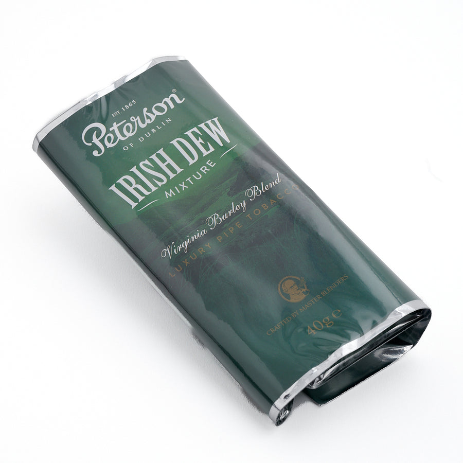 The Peterson Irish Dew is a new luxury mixture of well-matured Virginia and toasted burley tobaccos with whiskey and blossom fruit undertones. The sweet hint of vanilla and touch of chocolate arising from the toasted burley give this tobacco an exceptional finish. The blend is pressed into cakes and rubbed, enhancing the natural aroma of the tobacco.