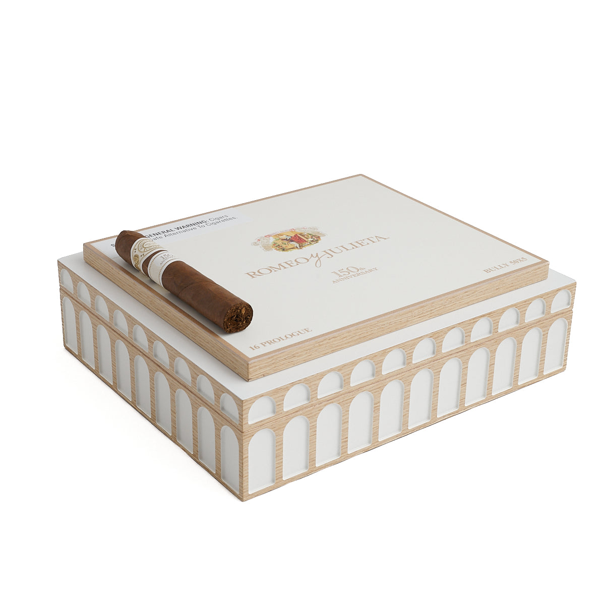 Product Information & SpecificationsRomeo y Julieta 150th Anniversary celebrates 150 years of excellence in cigar craftsmanship. This commemorative blend features a Sumatra Ecuador wrapper, a Mexican San Andrés binder, and a unique mix of Peruvian, Honduran, and Dominican fillers. Expertly handcrafted at the Tabacalera de Garcia Factory in the Dominican Republic, this cigar delivers a complex flavor profile that evolves throughout the smoke. Expect notes of cedar, spice, chocolate, coffee, and an earthy sweetness, making it a refined and memorable smoking experience.