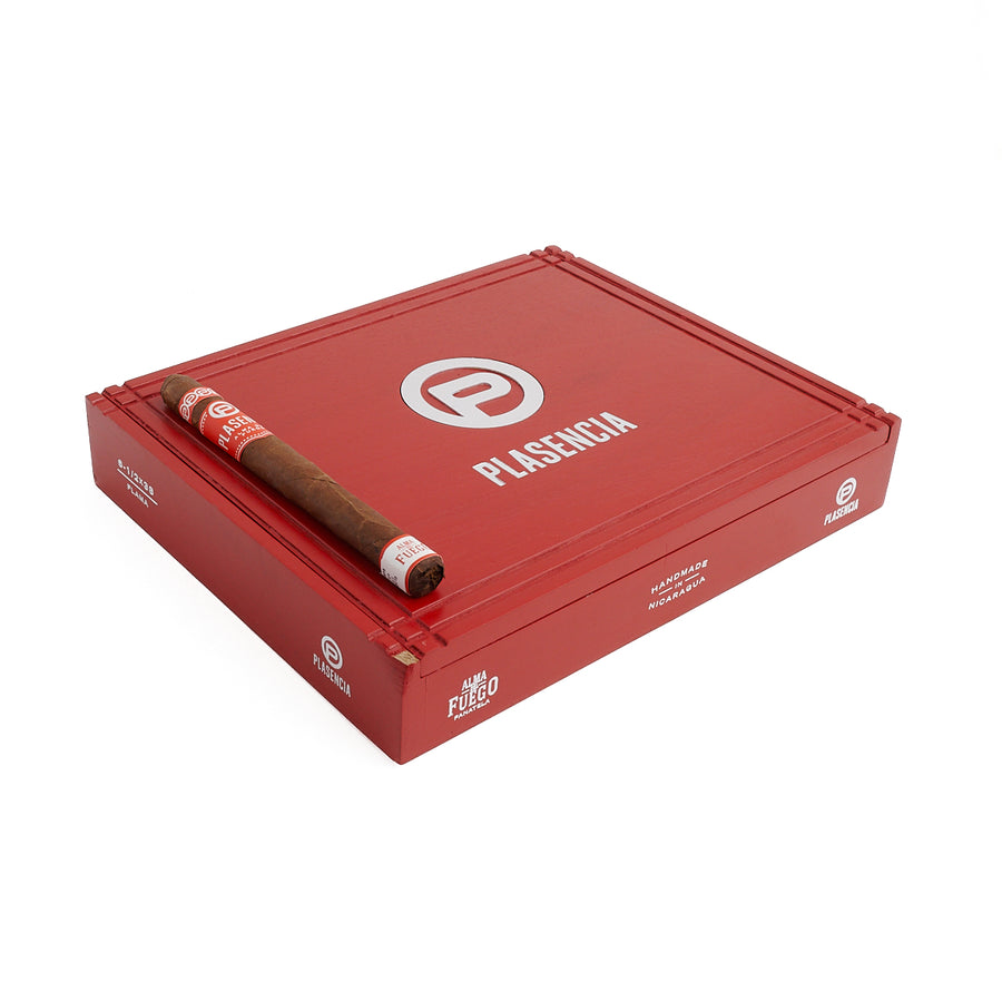 Plasencia Alma Del Fuego is a medium-to-full-bodied cigar that pays tribute to the volcanic soils of Ometepe Island, Nicaragua. This blend features a Nicaraguan sun-grown Jalapa wrapper, complemented by a double binder and filler tobaccos from Ometepe and other Nicaraguan regions. Expect bold notes of earth, leather, espresso, and spice, with a nutty and sweet finish. Aged for seven years, the Ometepe tobaccos bring depth and richness to this well-balanced smoke.