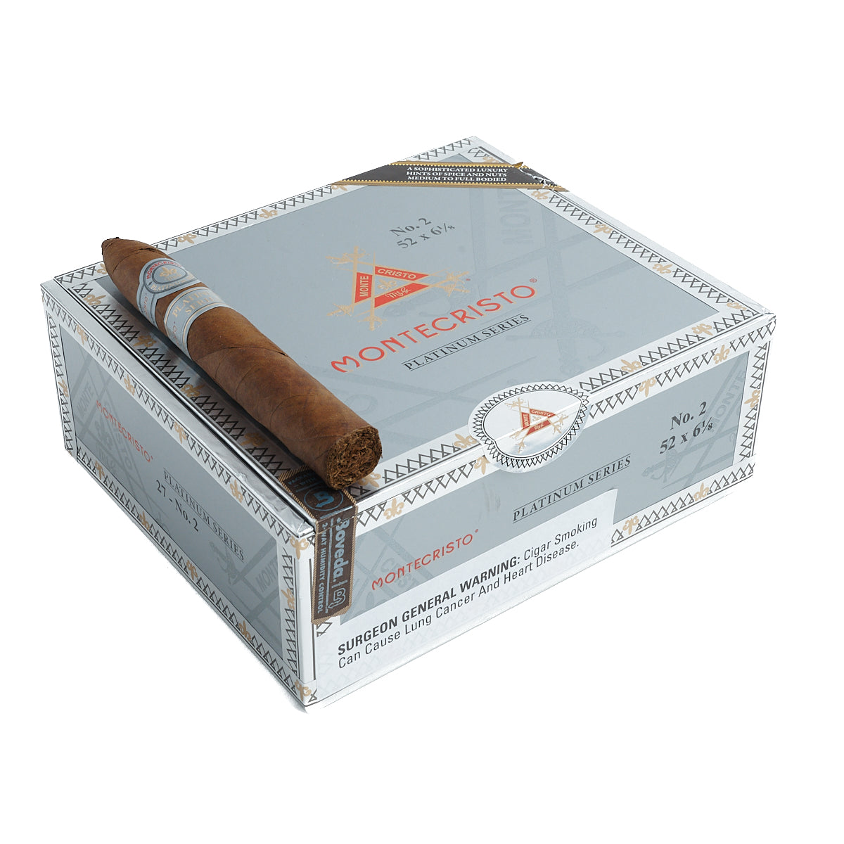 这款雪茄拥有丰富复杂的口感,带有山核桃木、泥土气息、甜味水果、杏仁、皮革、焦糖和咸味烤坚果的香气。Platinum系列以其均衡醇厚的烟气而闻名,是Montecristo爱好者们的最爱。