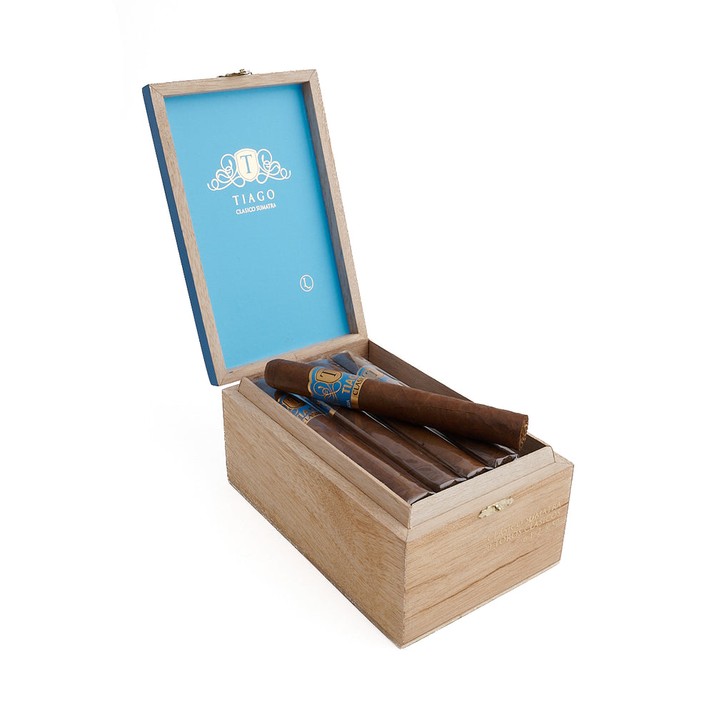 The Luciano Tiago Clasico Sumatra is a premium cigar that offers a refined and enjoyable smoking experience. This cigar features an Ecuadorian Habano Sun Grown wrapper, a Nicaraguan binder, and Nicaraguan fillers from Condega, Jalapa, and Ometepe. The blend creates a medium to full-bodied cigar with a complex flavor profile that includes notes of cedar, spice, and a hint of sweetness. The construction ensures a smooth draw and an even burn, making it an excellent choice for both novice and experienced cigar enthusiasts.