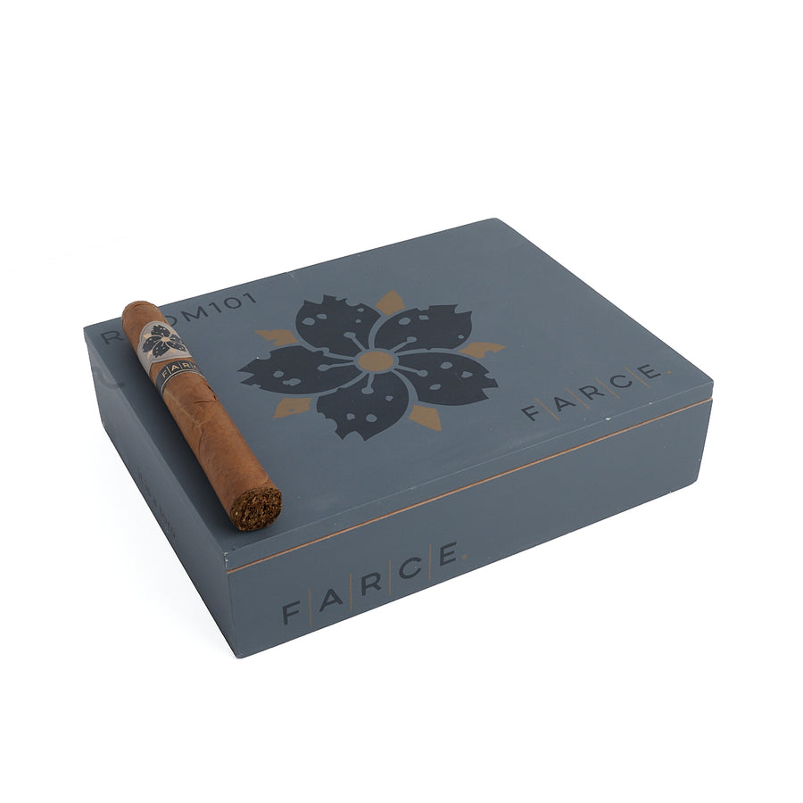 Room 101 Farce Original Habano is a premium cigar crafted with an Ecuadorian Habano wrapper, an Indonesian binder, and a blend of long-fillers from the Dominican Republic, Nicaragua, and Pennsylvania. This medium to full-bodied cigar offers a rich and complex flavor profile with notes of pepper, caramel, vanilla, and a hint of cocoa. It's a well-balanced smoke that delivers a satisfying and flavorful experience.