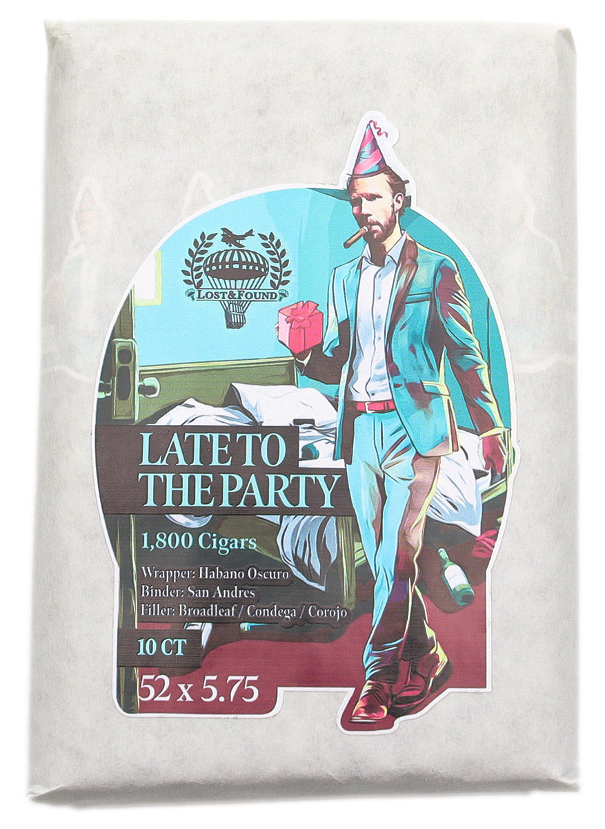 产品信息和规格In 2022, Lost & Found announced that they would also be offering cigars that have been specially commissioned from factories and intentionally aged prior to release. The Late to the Party is one such cigar, being made at Tabacalera Mina del Rey. It features a Habano Oscuro wrapper, a Mexican San Andrés binder, and a filler blend of Corojo, Condega, and Broadleaf tobaccos.