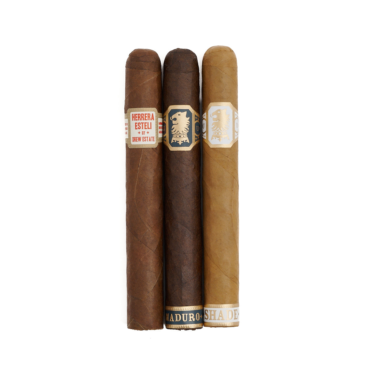 The Drew Estate Traditional 6ct Sampler is a curated collection of premium cigars, showcasing three of Drew Estate's most celebrated blends. This sampler includes two cigars each of the Undercrown Maduro, Undercrown Shade, and Herrera Esteli Habano, all in the popular Toro size (6.0" x 50). From the rich, oaky notes of the Undercrown Maduro to the creamy, nutty flavors of the Undercrown Shade, and the spicy, cedar-forward profile of the Herrera Esteli Habano, this sampler offers a diverse and satisfying smoking experience for both seasoned aficionados and newcomers.