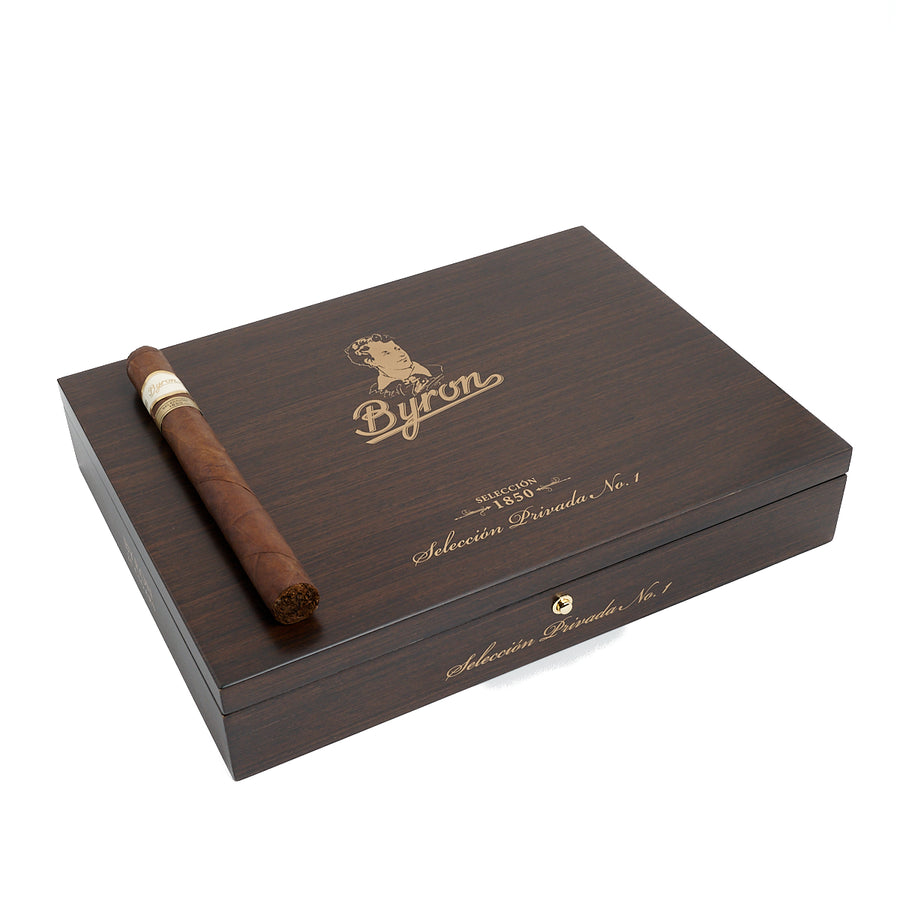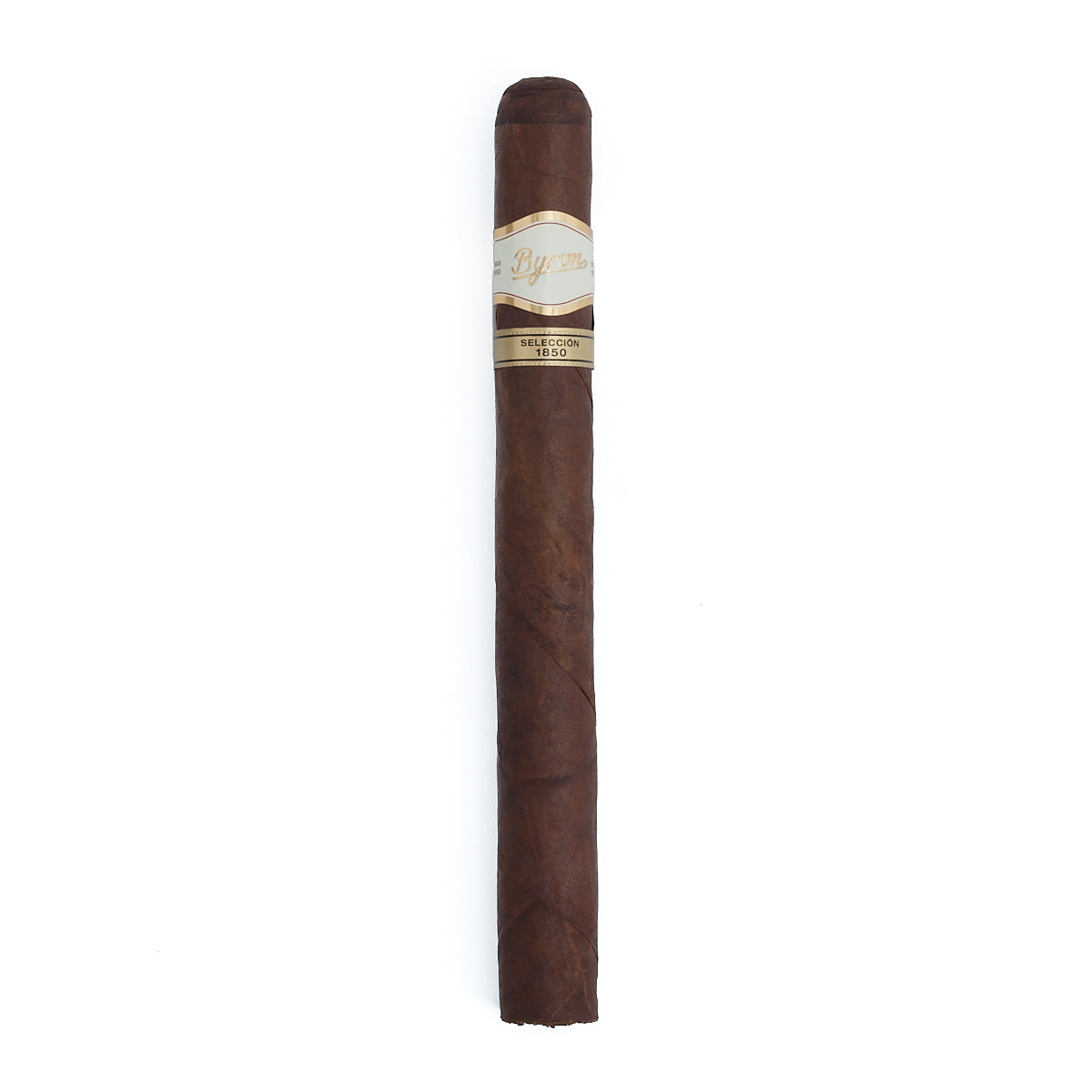 拜伦1850雪茄系列精心制作以庆祝拜伦雪茄的近 175 年辉煌历史。受到世界上最著名的葡萄酒的启发,Nelson Alfonso 引入了法国橡木桶的概念到他的陈年房间中。这种独特的陈年过程在精心筛选的杉木和法国橡木陈年房间中进行,持续五年。Byron 1850 雪茄采用连续的厄瓜多尔烟叶包裹,内含秘鲁粘合剂和多米尼加共和国和尼加拉瓜的填料。这种独特的陈年过程赋予雪茄复杂而精细的风味,是雪茄爱好者不可错过的选择。