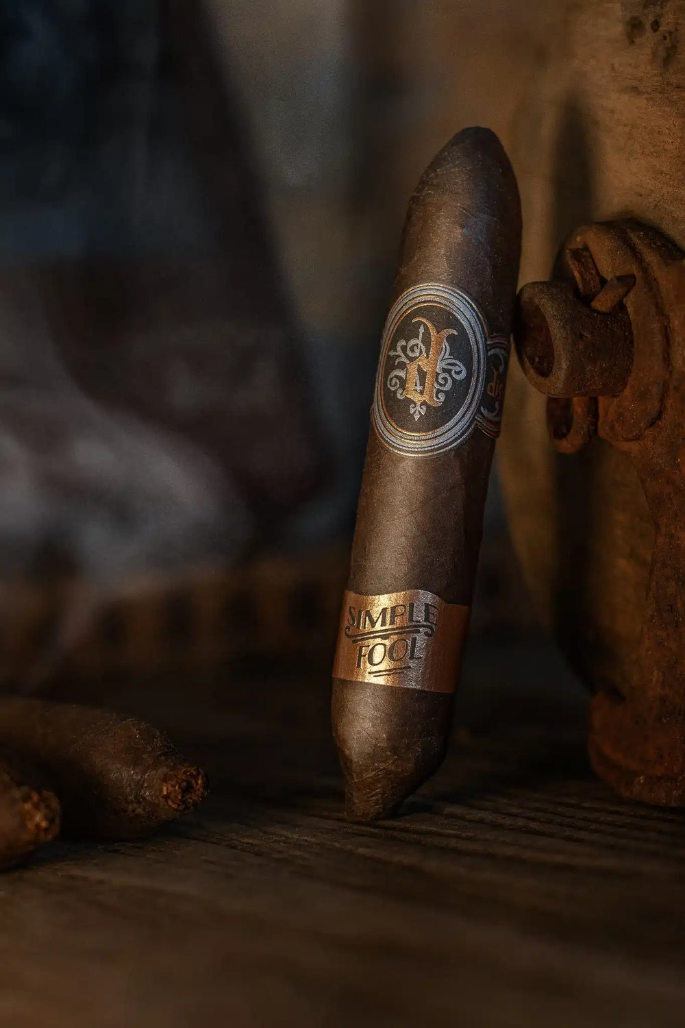 The blend for Simple Fool was a collaboration between AJ Fernandez and Justin Andrews. It is described as a Nicaraguan-forward smoke. The blend uses an Ecuadorian Sumatra wrapper along with Nicaraguan Habano binder and fillers.